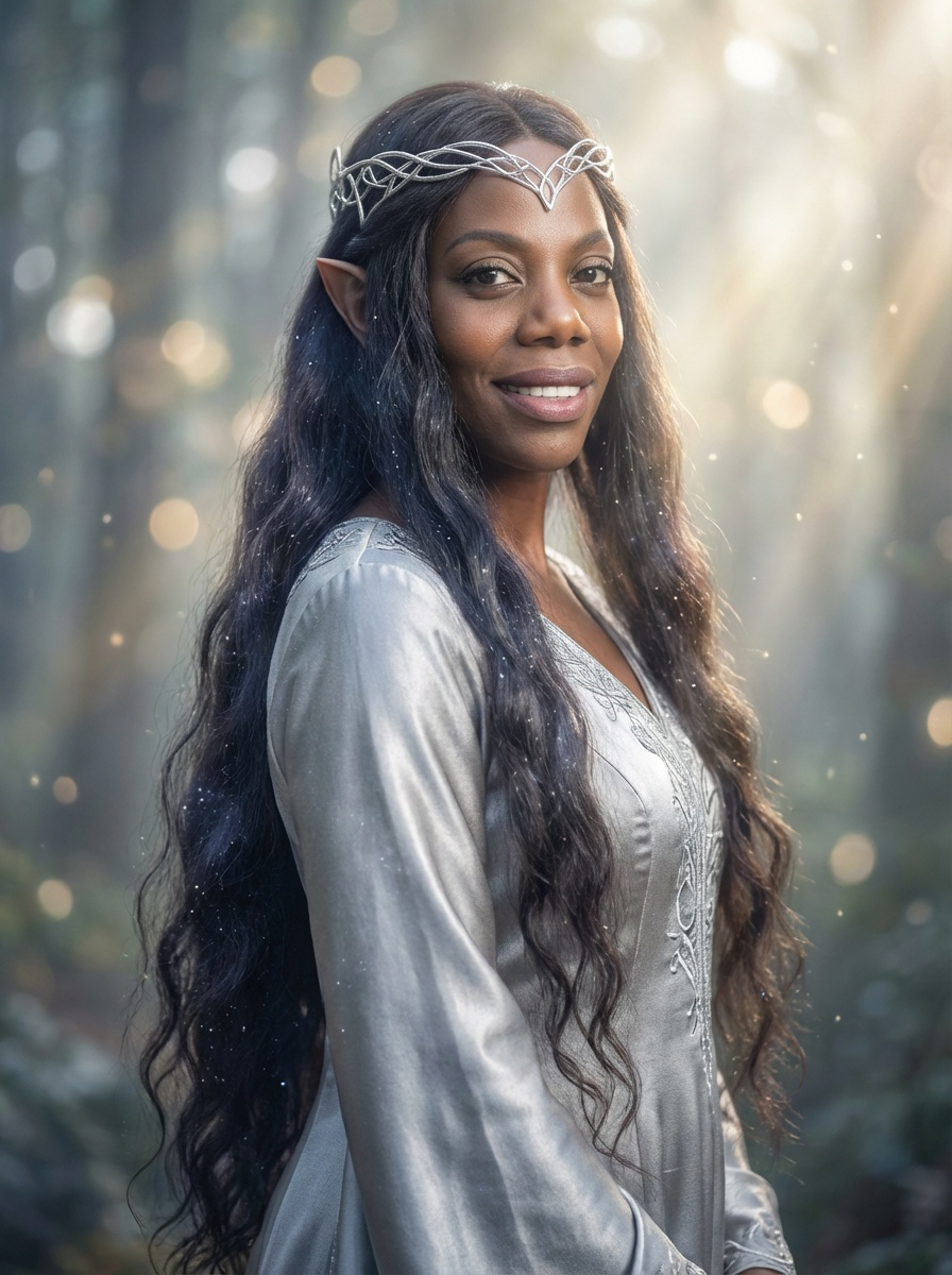 Évadez-vous dans un univers féerique où la nature s'illumine. Brume mystique, lucioles dorées et reflets magiques pour un portrait de légende.